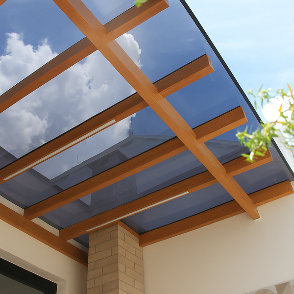 As chapas de policarbonato compacto oferecem alta transmissão de luz, comparável à do vidro, permitindo um excelente aproveitamento da luz natural.